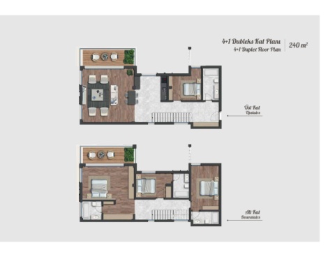 4+1 Dubleks Kat Planı 240 m 2 4+1 Duplex Floor Plan Üst Kat Upstairs Alt Kat Downstairs