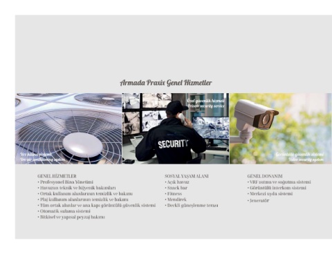 • Havuzun teknik ve hijyenik bakımları • Snack bar • Görüntülü interkom sistemi